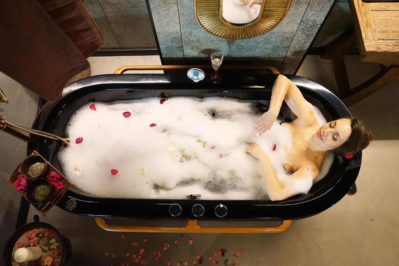 Zaplecze odnowy biologicznej obiektu M&M-Spa&Art Bali, Nadmorskie Tarasy obejmuje saunę i wannę z hydromasażem.