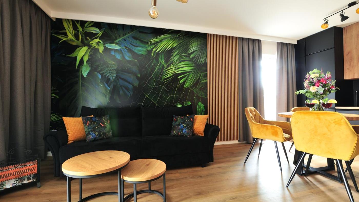 Apartament z 1 sypialnią. This apartment is comprised of 1 living room, 1 separate bedroom and 1 bathroom with a shower and a hairdryer. In the well-equipped kitchenette, guests will find a stovetop, a refrigerator, a dishwasher and kitchenware. Featuring a terrace, this apartment also offers a coffee machine, a seating area and a flat-screen TV with cable channels. The unit offers 2 beds. Apartament - 4 osobowy. Powierzchnia pokoju ok.: 45 mkw.