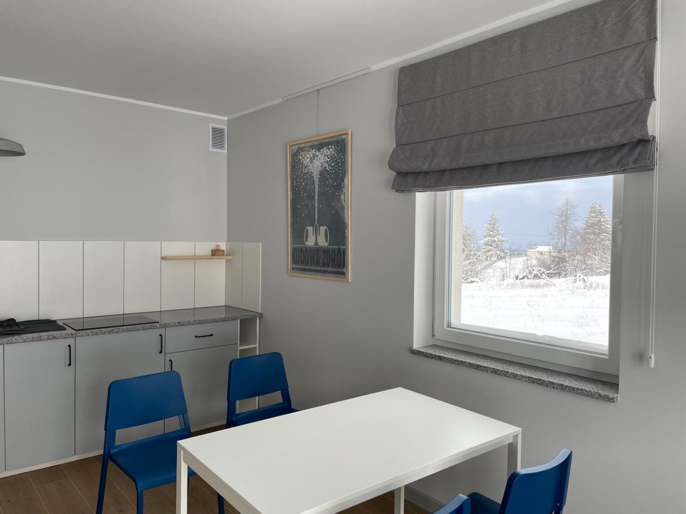 Apartament z tarasem. Boasting a private entrance, this apartment comes with 1 living room, 1 separate bedroom and 1 bathroom with a shower and a hairdryer. Guests can make meals in the kitchen that features a stovetop, a refrigerator and kitchenware. Featuring a terrace with mountain views, this apartment also features a tea and coffee maker and a flat-screen TV. The unit has 2 beds. Apartament - 4 osobowy. Powierzchnia pokoju ok.: 45 mkw. ;